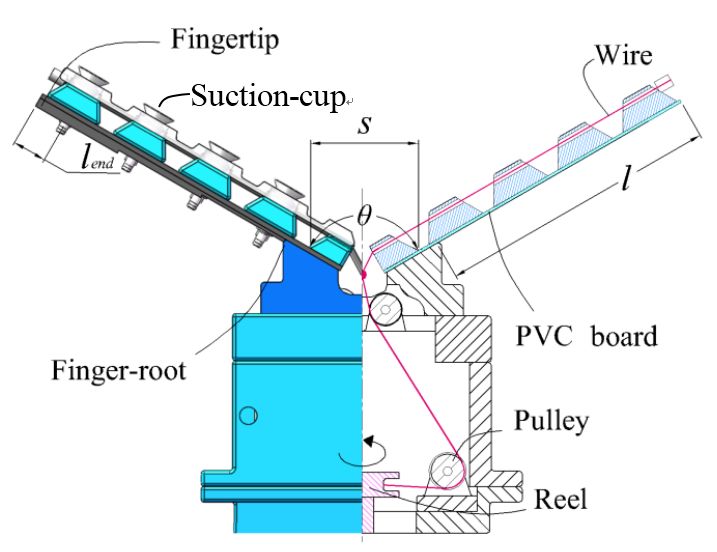 在非结构化的家庭环境中,抓取能力对于机器人来说至关重要。对于家庭服务机器人手爪的一个最基本的要求应该是能够抓取各种不同形状和不同大小的物体。毫无疑问,人的手有非常高的灵巧性,所以在家庭环境中表现的游刃有余。人的手具备的重要能力之一就是能够抓取尺寸很小的物体,比如钉子,水笔。同时也能够抓取较大的物体,比如足球,篮球。捏取和包裹抓取,对于机器人手爪来说是最常见的两种抓取方式。但在我们的实验中发现,在抓取较大尺寸的物体时,手爪所用的抓取方式有别于这两种方式。在之前的工作中,我们设计和分析了一种嵌有吸盘的欠驱动手爪。因此,本文在已有的手爪上提出和分析了“半包裹”抓取方式对应手爪在抓取较大物体时所呈现的抓取方式。