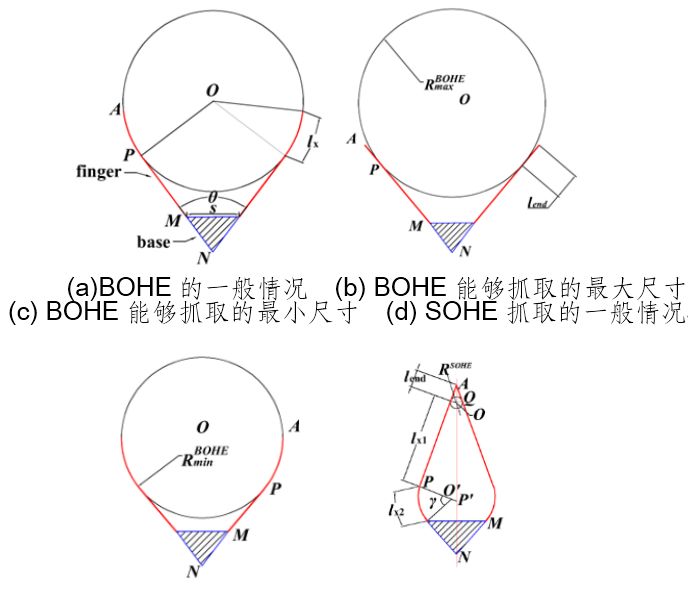 图3是BOHE和SOHE的抓取示意图,根据集合关系可以求得BOHE能够抓取的最大物体尺寸为: