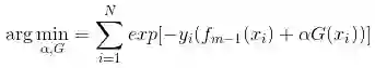 Adaboost每次迭代时的目的是为了找到最小化下列式子时的参数α和G: