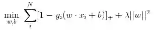 在机器学习算法中,hinge损失函数和SVM是息息相关的。在线性支持向量机中,最优化问题可以等价于下列式子: