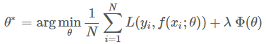 损失函数越小,模型的鲁棒性就越好。损失函数是经验风险函数的核心部分,也是结构风险函数重要组成部分。模型的结构风险函数包括了经验风险项和正则项,通常可以表示成如下式子: