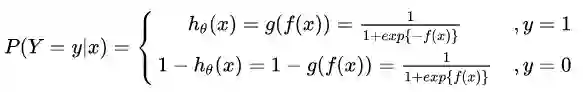逻辑回归的P(Y=y|x)表达式如下(为了将类别标签y统一为1和0,下面将表达式分开表示):