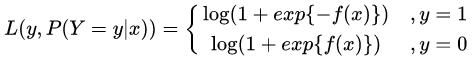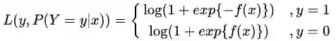 将它带入到上式,通过推导可以得到logistic的损失函数表达式,如下: