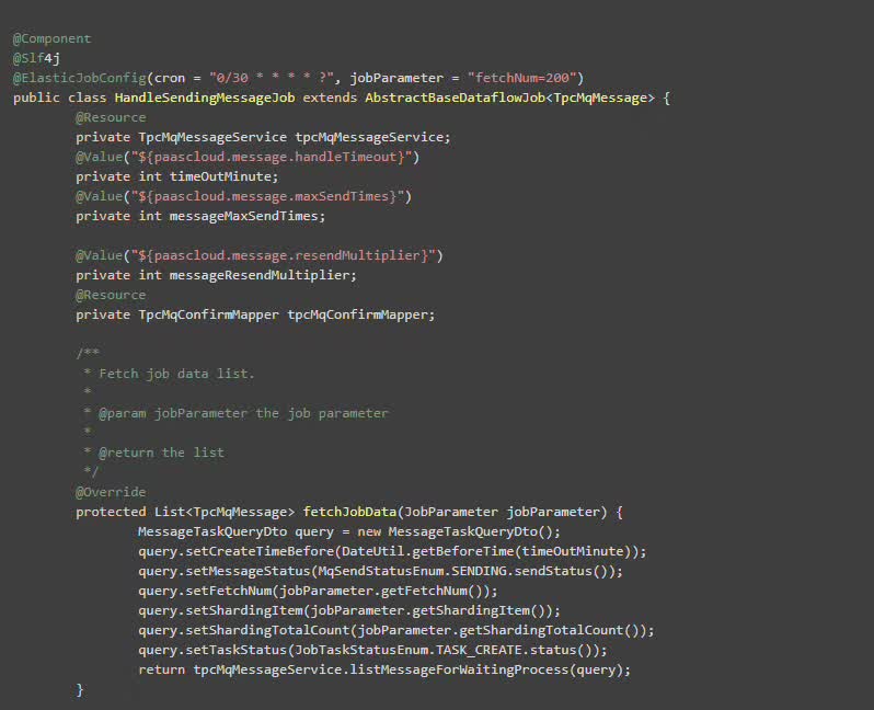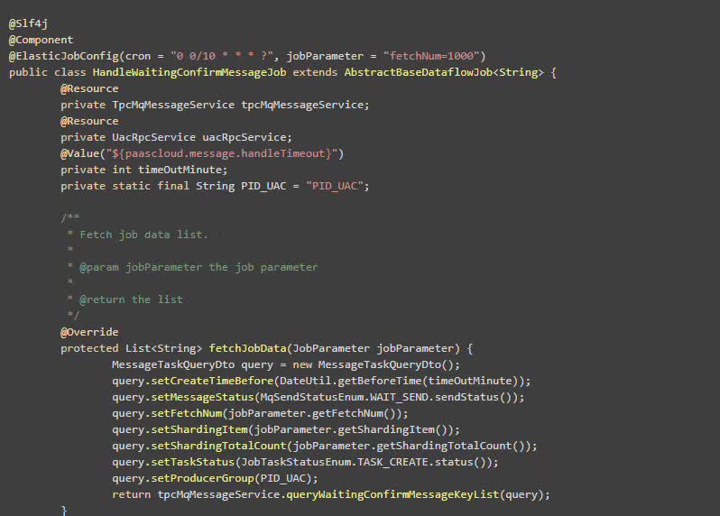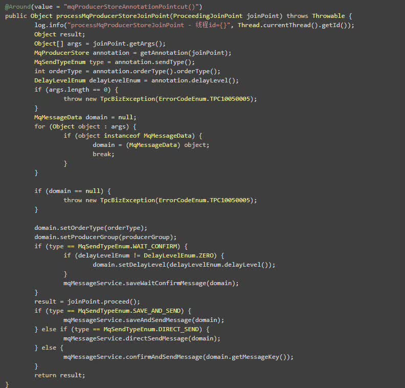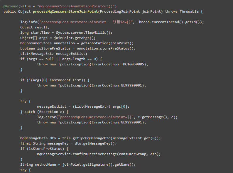 强制: 需要使用的使用加上述两个注解,方法参数需要加入 MqMessageData