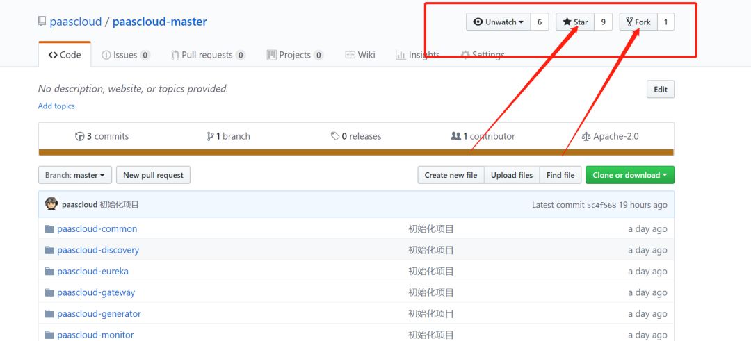 如果有时间最好能给点加个星或者follow一下,笔者在这里先谢过了。对不知道怎么加星的朋友,请用电脑登录github或者码云,这里两个截图