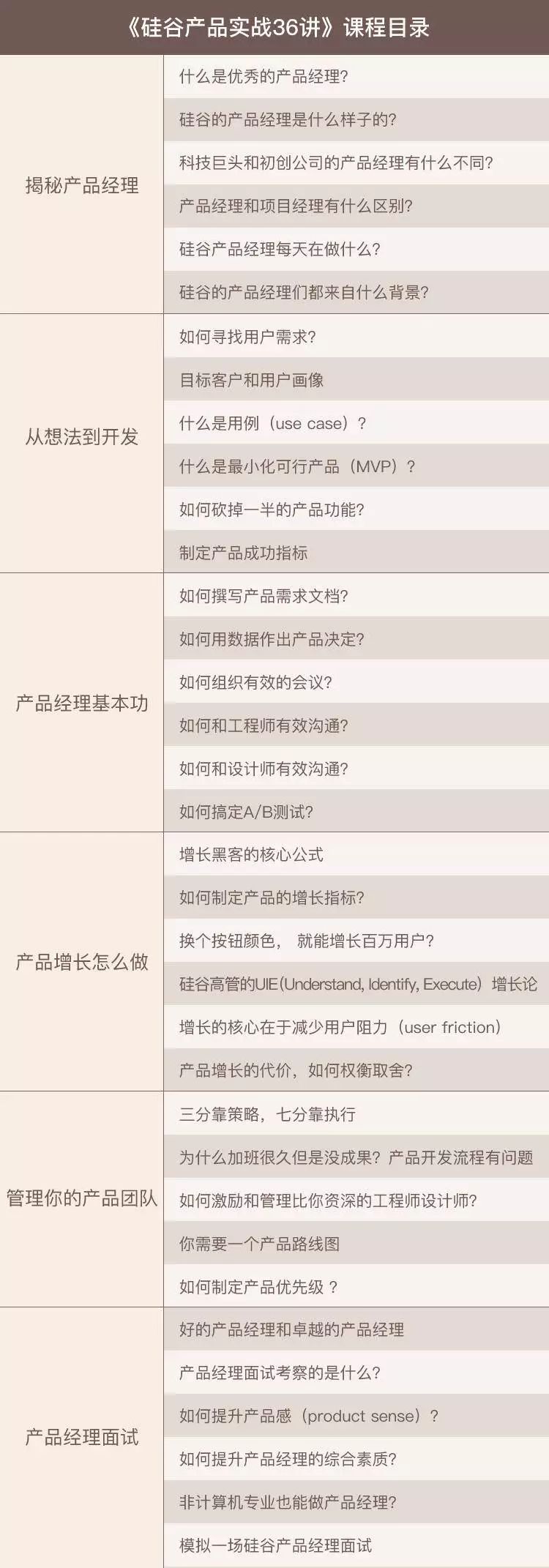 而所有我精炼出的产品经理实战方法和经验,都想在“硅谷产品实战 36 讲”里毫无保留的分享给你。