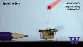 当激光光束照射到机器人顶部的光伏电池上时,光能将会转化为电能,使机器人的翅膀拍打起来,完成一小段距离的飞行。不过小编觉得,与其说是飞行,还不如说RoboFly就是蹦跶了一下。反观一年后出现的这款RoboBee X-Wing,能够不费劲儿地在空中待上好一会儿,这才能算得上是飞行。