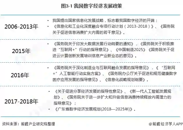 党的十八大以来,中国高度重视发展数字经济,推动数字经济逐渐上升为国家战略,要做大做强数字经济,拓展经济发展新空间。在党的十九大报告中,报告提出要推动互联网、大数据、人工智能和实体经济深度融合,建设数字中国、智慧社会。