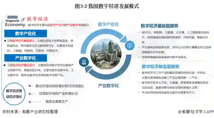数字经济已成为驱动经济发展的重要驱动力,也使得数字和产业的融合发展不断加快。我国的数字经济主要包括数字产业化和产业数字化两部分,其中数字产业化又称数字经济基础部分,主要包括电子信息制造业、信息通讯业、软件服务业及互联网等行业,主要技术包括4G、大数据、物联网、互联网、AI等技术;产业数字化又称数字经济融合部分,主要是利用数字经济对原有产业的数字化、智能化的升级。主要包括农业数字化、工业数字化、服务业数字化及政府数字化等产业。