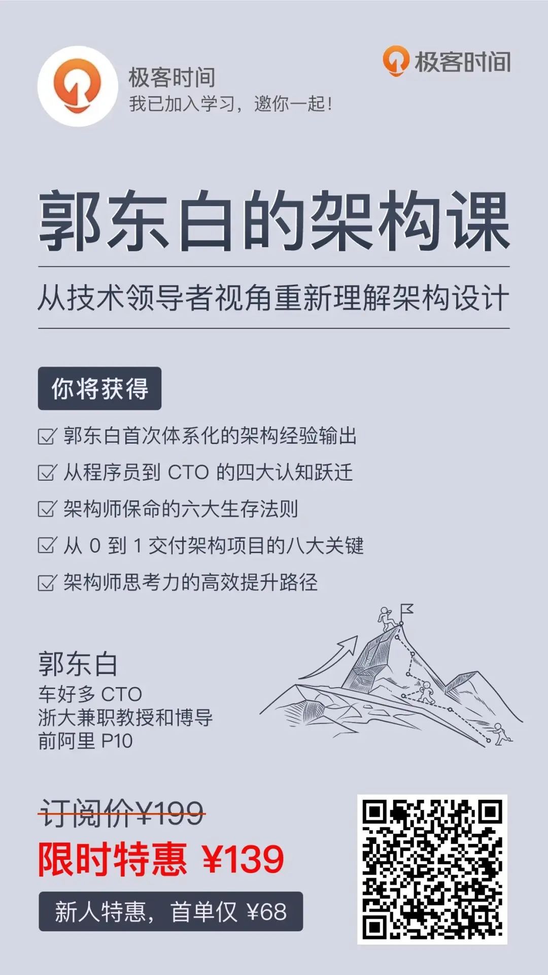 现在极客时间老用户入手 ¥139,新用户仅 ¥68
