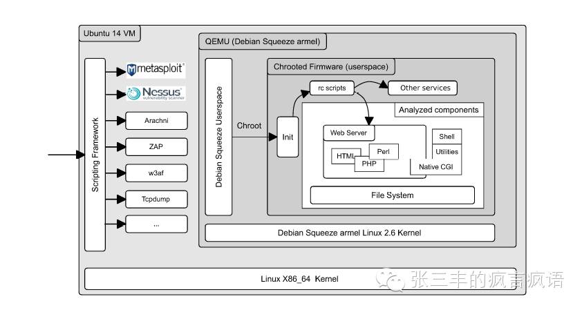 该议题展示有一种批量进行嵌入式Web安全测试的方法,使用QEMU搭建仿真云,只需要嵌入式设备的固件,即可启动固件中的WEB服务或接口。然后使用扫描工具自动对WEB服务或接口进行扫描。
