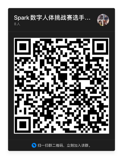 更多信息请加入Spark数字人体挑战赛选手问答钉钉群