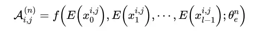 通过以下公式,编码模块将序列转换为边相关的转移矩阵,即传播模块的参数: