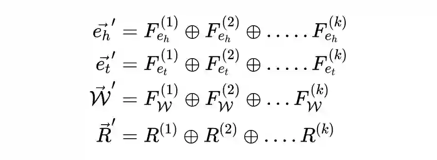 因为每个实体可能在不同的上下文中涉及多个关系,论文的思想是学习在独立的向量空间中三元组的实体和关系嵌入,以捕捉更有表现力的表示。三元组的向量表示分别由初始头实体向量、初始尾实体向量和初始关系向量表示:
