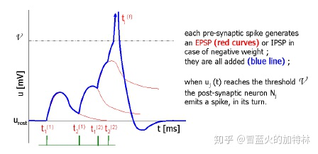 (2)基础知识准备:要解决题主的这两个问题,首先就要知道人脑是怎样基于脉冲的形式进行学习的:当一个神经元通过突触(准确的说是轴突)传输脉冲到下一个神经元,下一个神经元收到脉冲后就会引起膜电位的上升,不发射脉冲的时候,由于神经元存在离子泄露,导致膜电位下降;而当该神经元的膜电位达到一定阈值的时候,就会发射脉冲到下下个神经元了,当然你也得让神经元歇一会,在它发射脉冲后的一段时间内,你咋扒拉它,它也不射了,哦,不是,是不发射脉冲了(说白了就是贤者时间呗)。