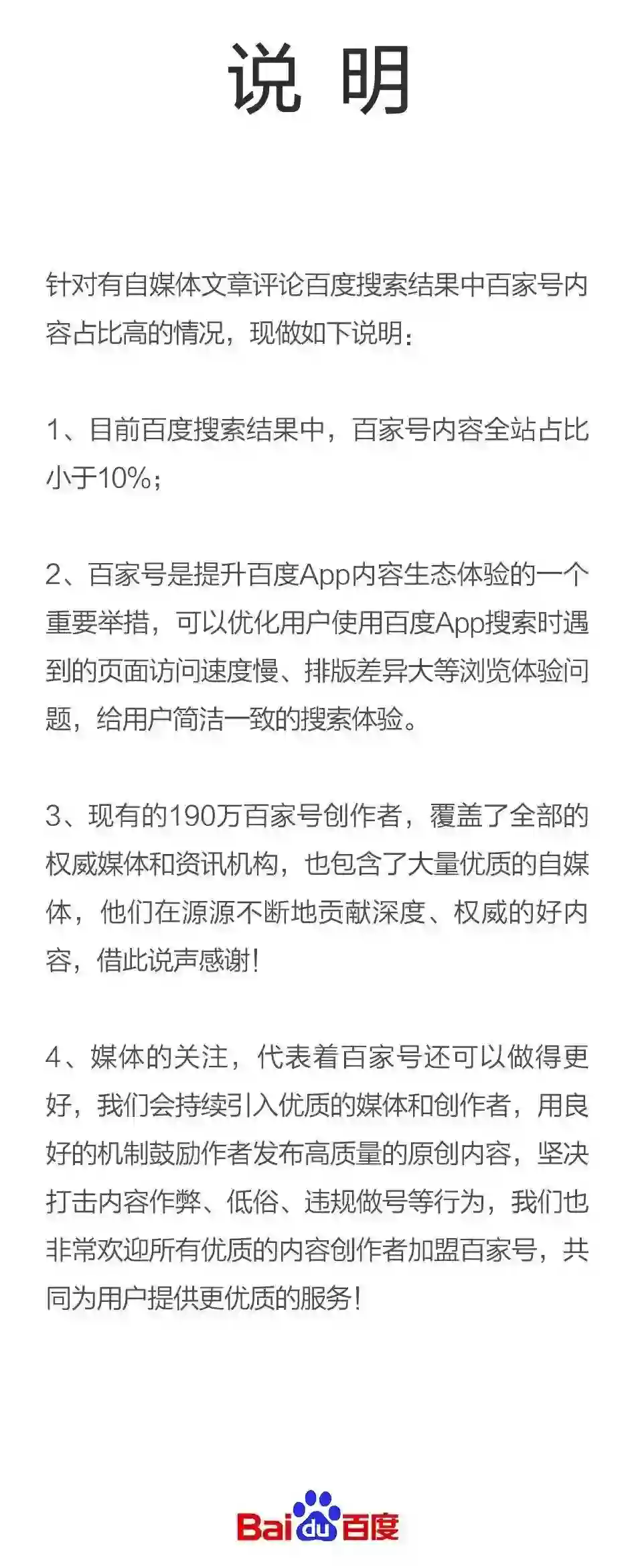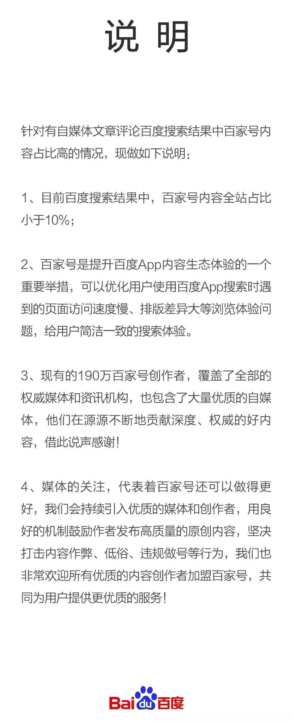 第一,大家在意的并不是百家号占全部搜索结果总量的多少,而是为什么排在前面的总是百家号。不信你把百家号内容全部放到第三页,看看还有没有人投诉。