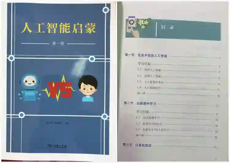 适用于小学阶段的《人工智能启蒙》教材。图源:https://www.pingwest.com/a/199668