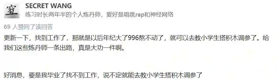 中小学 AI 教育的广泛开展还让广大「炼丹师」看到了「再就业」的希望:「等哪天 996 熬不动了,可以去教小学生搭积木调参了。」