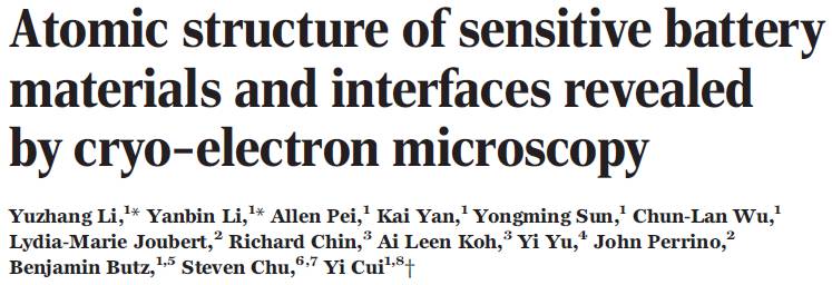 继冷冻电镜诺贝尔奖之后,今天出版的最新一期Science,发表斯坦福大学崔屹组和诺贝尔物理学奖得主朱棣文的最新研究论文,Atomic structure of sensitive battery materials and interfaces revealed by cryo–electron microscopy,开启冷冻电镜材料科学研究新篇章。请看知社深度介绍和独家专访,以及崔屹教授的感言和展望。