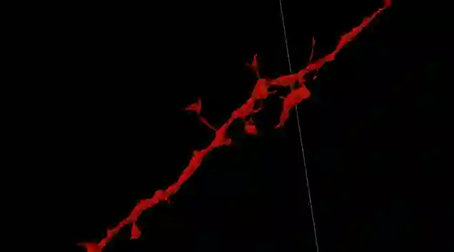 图为我们的算法正在跟踪鸣禽大脑中的一个神经突触