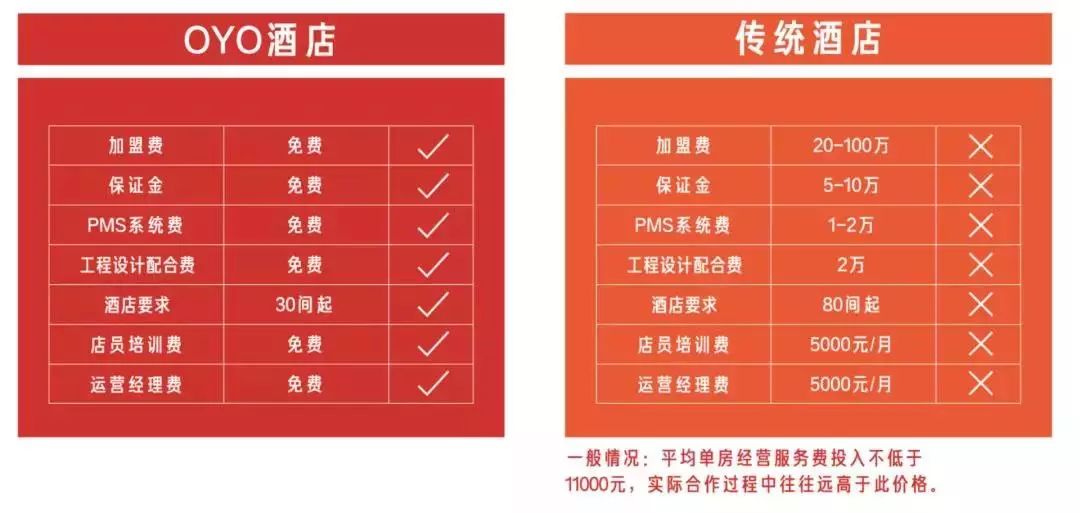 所有对加盟商的承诺中,最吸引赵阳的还是不收加盟费的政策。这是OYO和传统连锁酒店集团最大的不同,也是其快速扩张的核心。