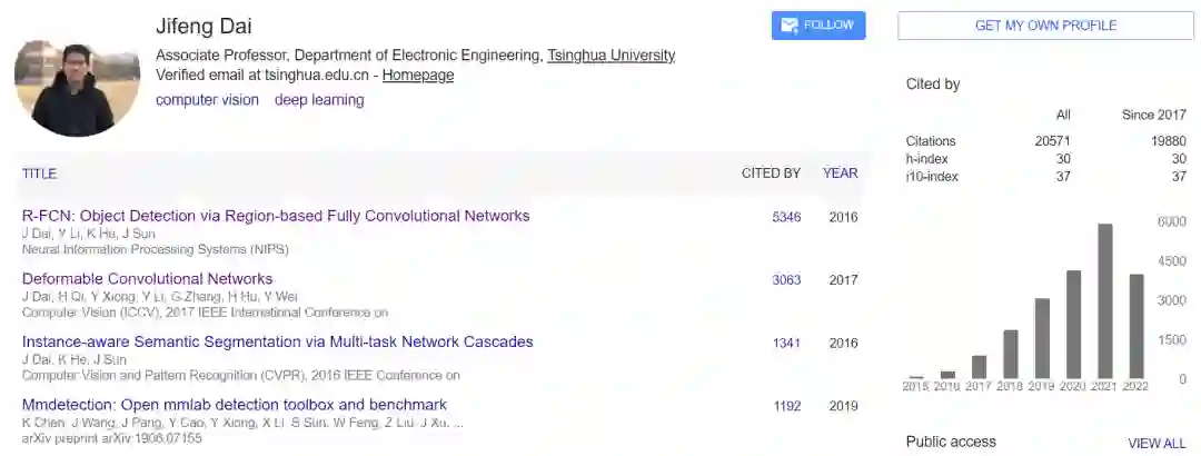 在此期间,代季峰以一作身份完成了一些重要工作,包括R-FCN目标检测算法和Deformable ConvNets等,两篇论文的引用量都在3000以上。