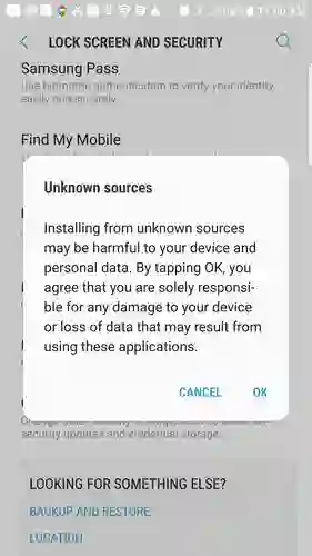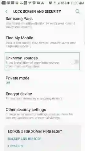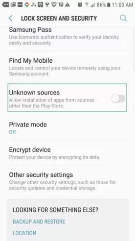 2、 向下拉并点击 “Unknown Sources” 的开关。