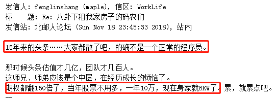 什么样的回报值得加班,就看个人情况来了。下文帖子中的小哥,京杭君认为他的加班强度是完全可以忍受的,毕竟好几千万的回报呢,如果是真的话。