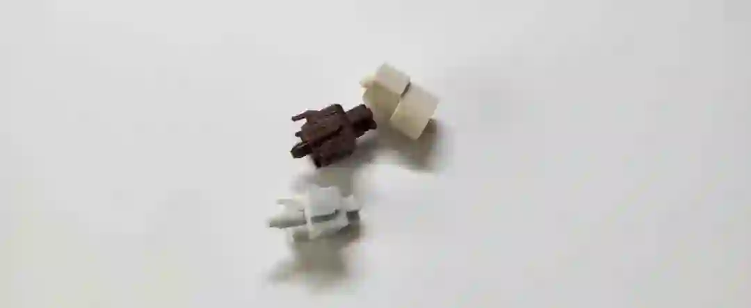 这里我们就可以理解之前提到的类青轴特有的,失去段落手感的「臭轴」现象。当弹片逐渐老化,或者滑块逐渐磨损,二者的摩擦力不足以将滑块固定在动片的凸起处时,滑块就会在按下和抬起的时候随着轴心一同滑动,这时,类青轴特有的滑块打击带来的声音和手感都会消失,它会变成手感不稳定的段落轴——也就是下面我们要提到的类别。