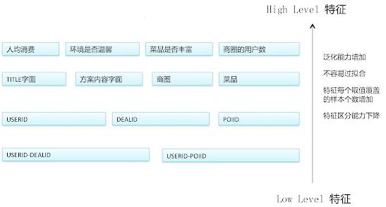训练数据少,High Level特征多,则使用“复杂”的非线性模型(流行的GBDT、Random Forest等);