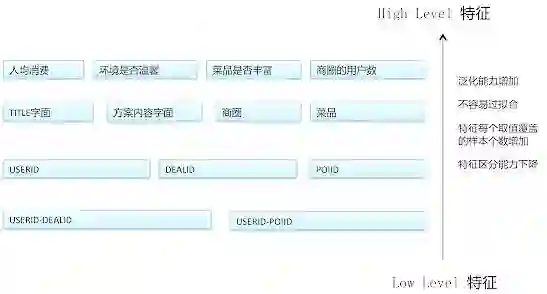 所以,总体上,Low Level 比较有针对性,单个特征覆盖面小(含有这个特征的数据不多),特征数量(维度)很大。High Level比较泛化,单个特征覆盖面大(含有这个特征的数据很多),特征数量(维度)不大。长尾样本的预测值主要受High Level特征影响。高频样本的预测值主要受Low Level特征影响。