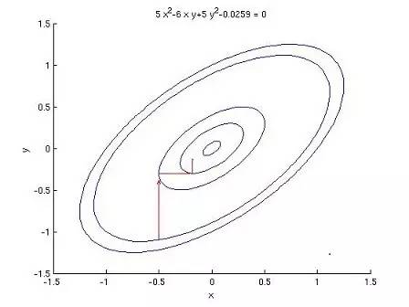 对于w,每次迭代,固定其他维度不变,只对其一个维度进行搜索,确定最优下降方向(示意图如下),公式表达如下: