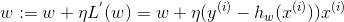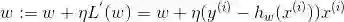 随机梯度下降(Stochastic Gradient Descent),每一步随机选择一个样本,计算相应的梯度,并完成w的更新,如下式,