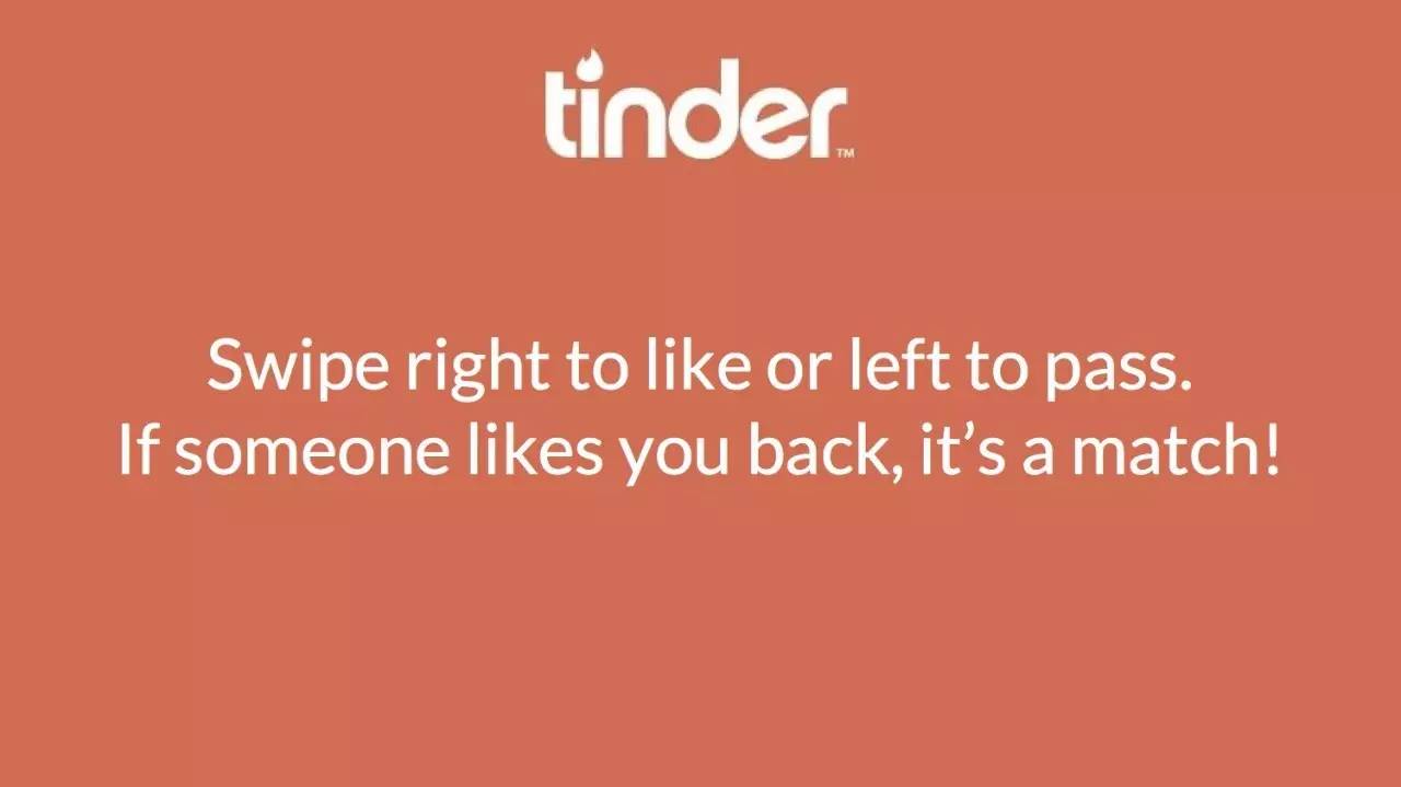 Tinder,向左滑动「喜欢」,向右滑动「过」。如果有人也喜欢你,匹配成功!