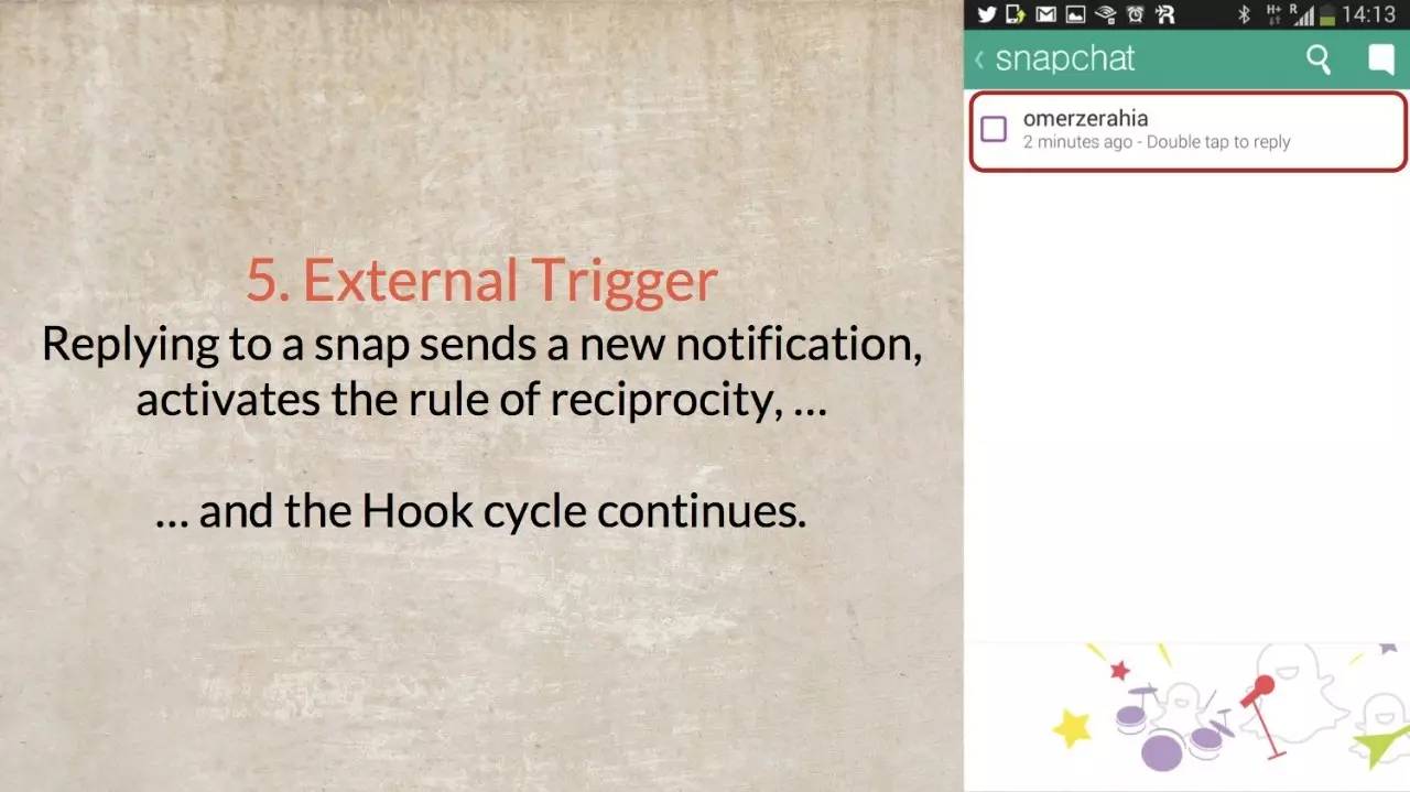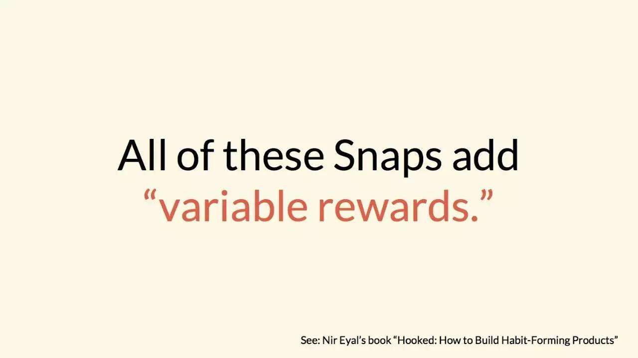 《Hooked:How to Build Habit-Forming Products》是一本教你如何打造一款让人「上瘾」、形成习惯的产品的畅销书,作者 Nir Eyal 在 2015 年发布了一个名为《The Secret Psychology of Snapchat》的 slides,讲解了 Snapchat 为何能够如此流行,并持续具备生命力。