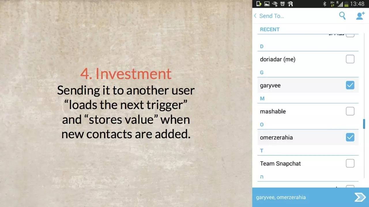 当增加新的联系人时,将照片发给其他用户,「加载下一个触发器」就能「存储价值」。