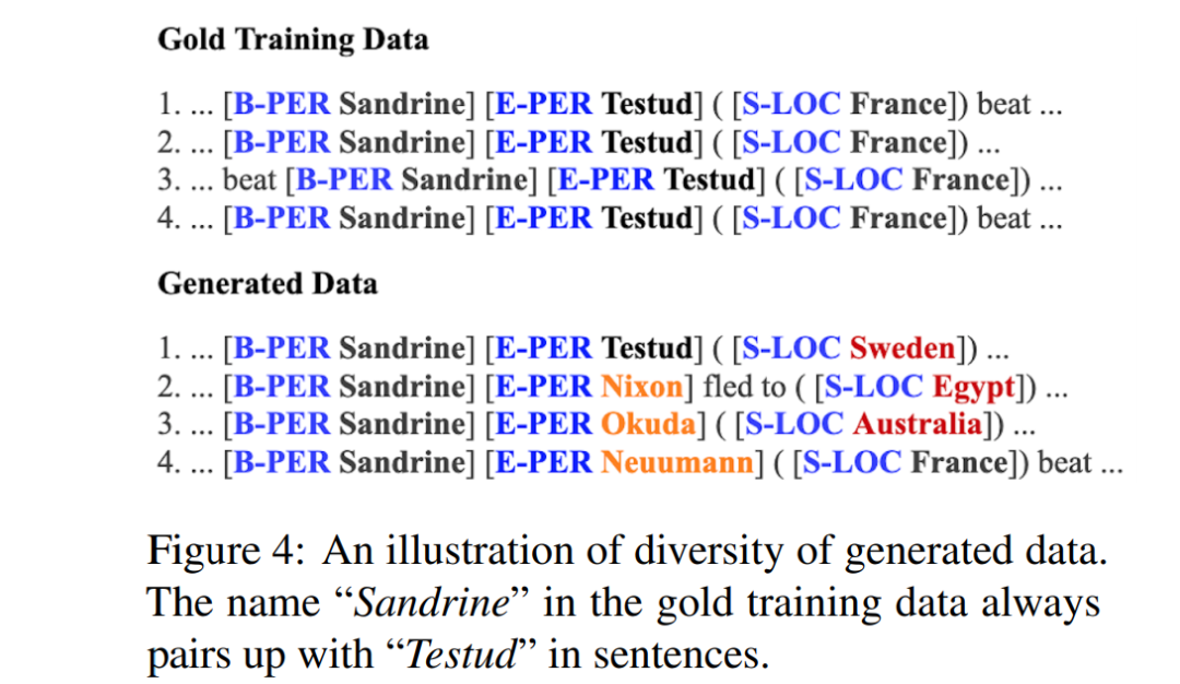 基于生成的数据增强:提出了一种全新的 NLP 数据增强技术,可以应用于各种序列标注任务。相比于计算机视觉和语音,在自然语言处理的序列标注任务上,当前并没有有效的数据增强技术,以往提出的同义词替换等方法过于简单且效果不佳。而其他的数据增强方法如反向翻译等仅适用于翻译或者分类任务,并不适用于序列标注任务。
