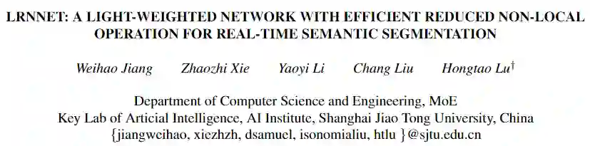 本文是 上海交通大学团队提出的轻量级实时语义分割算法。本文主要从视觉注意力机制中的non-local 模块出发,通过对non-local模块的简化,使得整体模型计算量更少、参数量更小、占用内存更少。在Cityscapes测试集上,没有预训练步骤和额外的后处理过程,最终LRNNET模型在GTX 1080Ti显卡上的速度为71FPS,获得了72.2% mIoU,整体模型的参数量仅有0.68M。