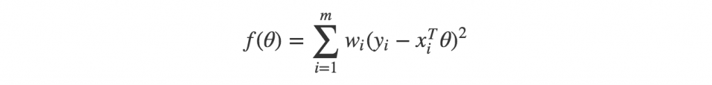 当我们需要对数据点xx相应的目标值进行预测的时候,我们需要给样本中的每个点赋予一个权重值wi (为了区分权重和回归系数,在这里用θ表示回归系数,w表示权重), 那么平方误差的表达式就变成: