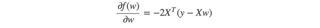 对于上述式子f(w)可以通过梯度下降等方法得到最优解。但是使用矩阵表示将会是的求解和程序更为简单: