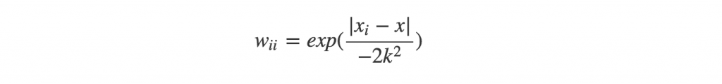 W[i, i] = exp((np.linalg.norm(x - xi))/(-2*k**2))