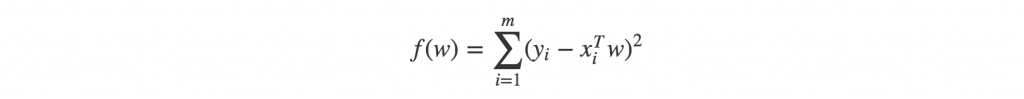 那么怎样的w才是最优的呢?在标准线性回归中我们需要找到是误差最小的w, 即预测的y值与真实的y值之间的差值,为了避免简单累加造成的正负差值相互抵消,这里采用了平方误差: