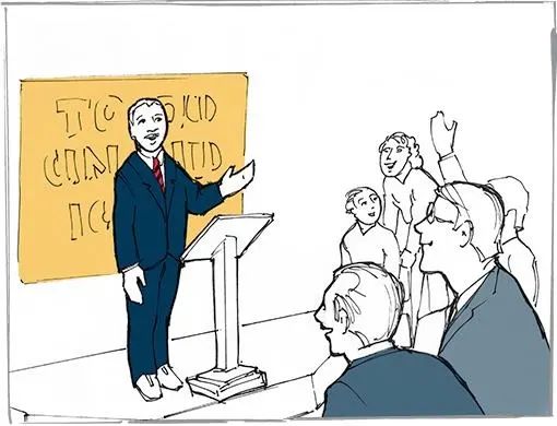 在talk之后,他会让大家提问,如果没有人提问的话,他总是能够自己提出几个问题来。