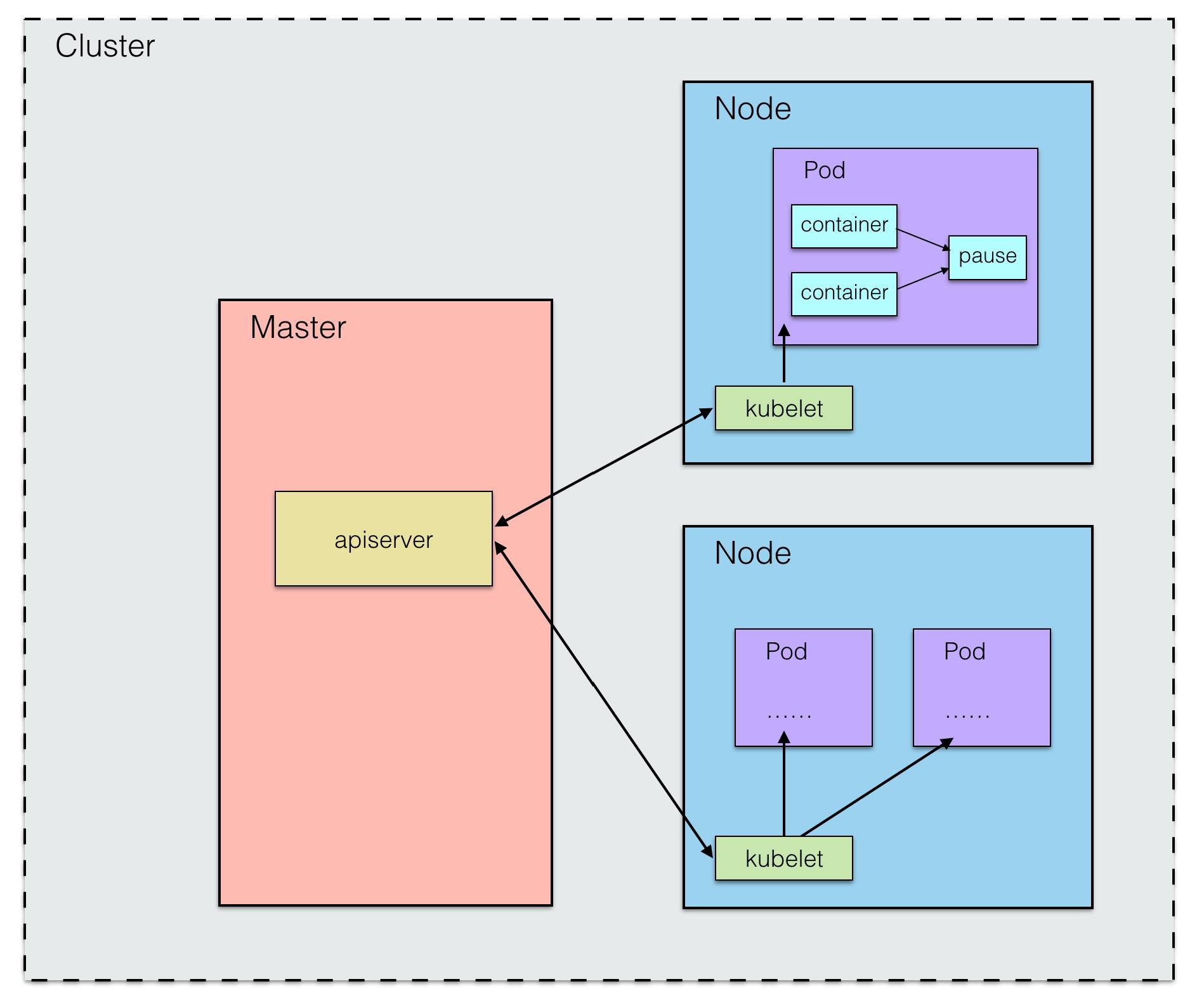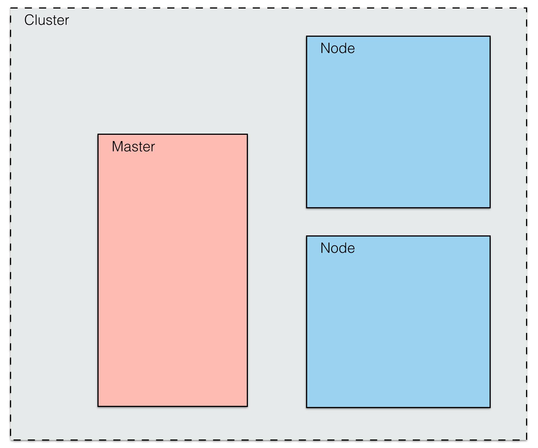 首先,既然是个分布式系统,那势必有多个 Node 节点(物理主机或虚拟机),它们共同组成一个分布式集群,并且这些节点中会有一个 Master 节点,由它来统一管理 Node 节点。