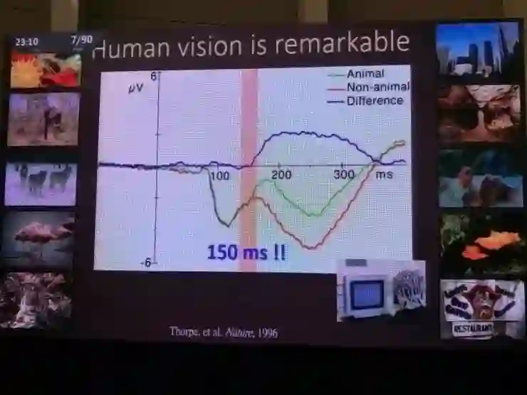 MIT教授Simon Thorpe在1996年的一个实验中,也通过记录脑波的方式表明,人类只需要观察一张复杂照片150ms的时间,就能辨别出其中是否包含动物,不管是哺乳动物、鸟类、鱼,还是虫子。