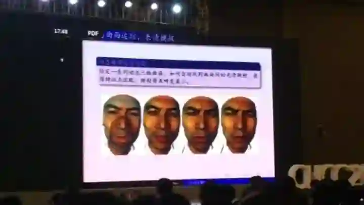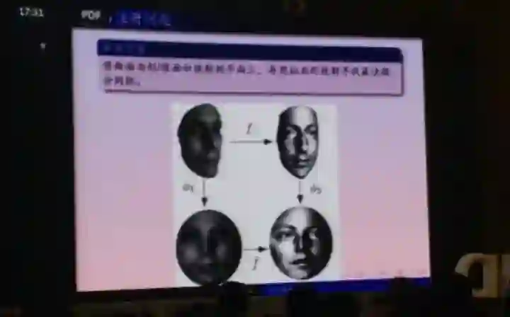 因此,我们可以用来追踪表情,表情捕捉。一个人他在笑、在哭、在种种不同的表现的时候,我们能够得到他的重要的面部特征,主要的方法就是我们将它映射到平面上,然后用共形映射或拟共形映射来研究它。这些都是很重要的数学工具,在计算上也有很重要的应用。