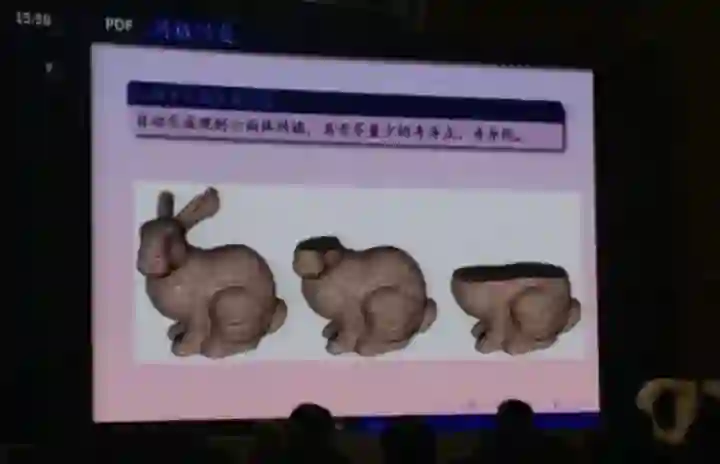 这是在一只兔子上找到的好的网格。但是这个网格会产生一些奇异点(拓扑学的缘故)。针对这些奇异点,我们就做了一些研究,得出了很好的结论。
