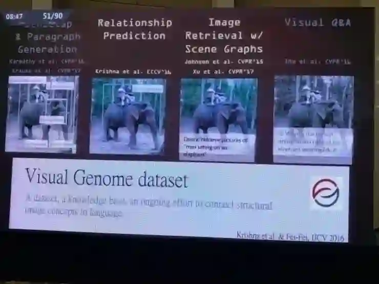 经过三年的准备后,李飞飞团队推出了Visual Genome数据集,包含了10万张图像、420万条图像描述、180万个问答对、140万个带标签的物体、150万条关系以及170万条属性。这是一个非常丰富的数据集,它的目标就是走出物体本身,关注更为广泛的对象之间的关系、语言、推理等等。