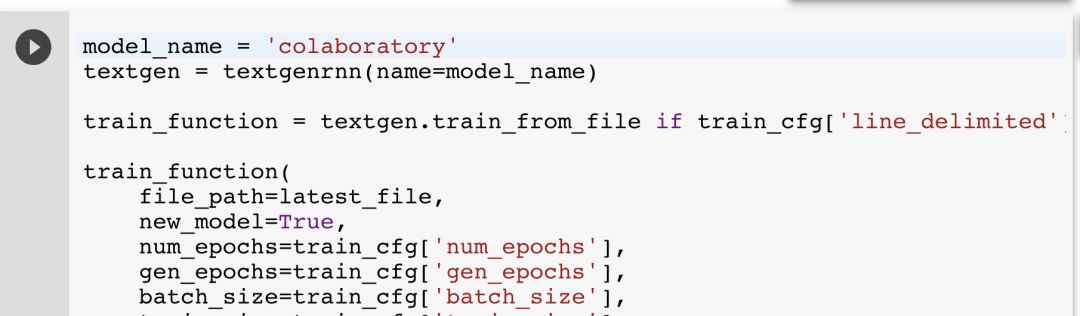 textgenrnn 的一个好处是它可以免费使用「Google Colaboratory」很容易地在 GPU 上快速地训练神经网络。我创建了一个 notebook(https:// drive.google.com/ file/d/ 1mMKGnVxirJnqDViH7BDJxFqWrsXlPSoK/ view),它可以让你仅仅通过几次点击就能够训练自己的网络并且生成文本。
