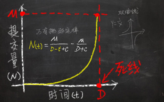 杜拉克维茨管这个模型叫“万有拖延定律”。对各种活动的组织者来说,这个公式有非常实际的应用,工作人员应该提前预见到截止日期当天激增的提交量对系统的冲击。杜拉克维茨还提醒习惯拖延的申请人,双曲线在渐近线(截止日期)附近趋向无穷大。最终,你也许能在强大压力下完成工作,但无法回避的问题是,当你在一边拖延一边等待死线到来的时间里,失去的是检查结果、修正错误和挽回可读性的时间,你很可能因此被拒。